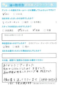 海が大好きだった故人の強い希望で、思い出の海に散骨をしてあげたい。