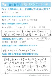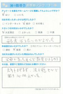 9月27日チャーター海洋散骨プラン INナガシマリゾート沖 安城市 Y様