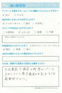 粉骨・散骨も一切外部に委託せずすべて責任者が一貫して行うため、他社様と比較し低価格が実現できているのです。