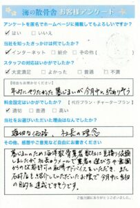 海が大好きだった故人の強い希望で、思い出の海に散骨をしてあげたい。
