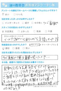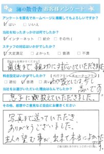 9月27日チャーター海洋散骨プラン INナガシマリゾート沖 安城市 Y様